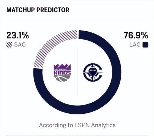 快船正迎来强劲的复苏势头。最近他们刚刚取得赛季最长的四连胜,包括一场令人惊叹的112-99大胜东部第一活塞。这波连胜让快船的战绩提升至10胜21负,虽然仍排在西部第13位,但他们距离季后赛附加赛区仅差2.5个胜场。即将到来的比赛,是快船大战国王。赛前,美媒ESPN根据球队状态、伤病情况和历史交锋等因素预测,快船的胜率高达约77%,而国王仅为23%。这不仅仅是数据上的优势,更反映了两队目前现状。